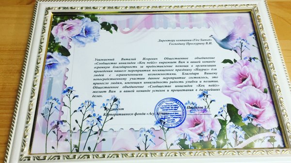 Благотворительность — очень важно для нас. Мы всегда поддерживаем такие мероприятия. Очень приятно было получить такое письмо благодарности.