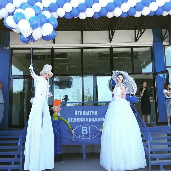 Ходулисты @firesunsetkz на открытии Центра продаж Компании @bi.group