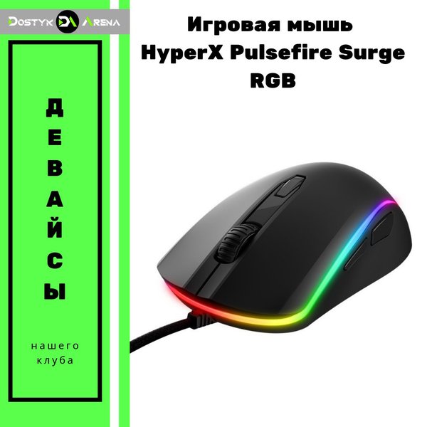 страцией всех нажатий. •Вы можете выбирать нужное значение разрешения мыши, задавать индивидуальные светодиодные цвета, назначать макросы и сохранять их непосредственно в мышь с помощью ПО HyperX NGenuity. Кроме того, Pulsefire Surge поставляется с крупными наклейками, обеспечивающими плавное и контролируемое скольжение.