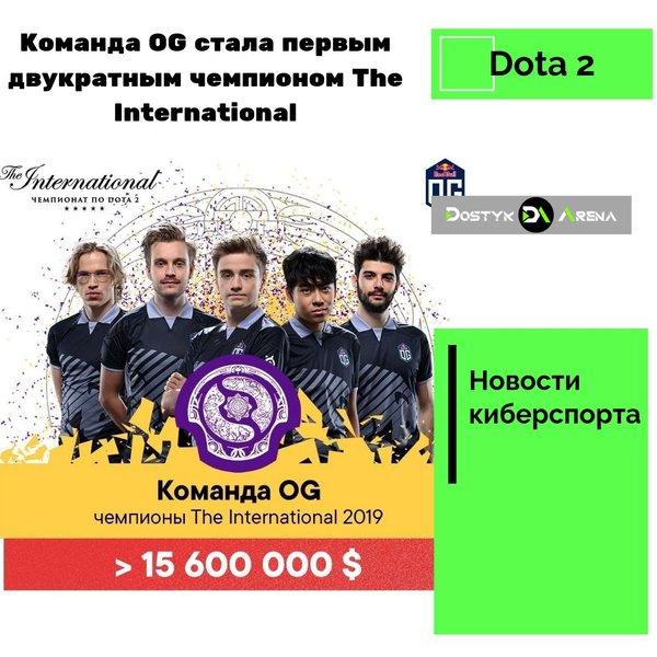 ую команду PSG.LGD. В гранд-финале «жидкие» забрали первую карту, но потом удача их покинула, и коллектив не смог сопротивляться натиску OG. •Так команда OG стала первым в истории двукратным победителем The International, причём заслужила титул чемпиона дважды подряд! Команда забрала больше 15 миллионов долларов из общего призового фонда, который превысил 34 миллиона долларов.
