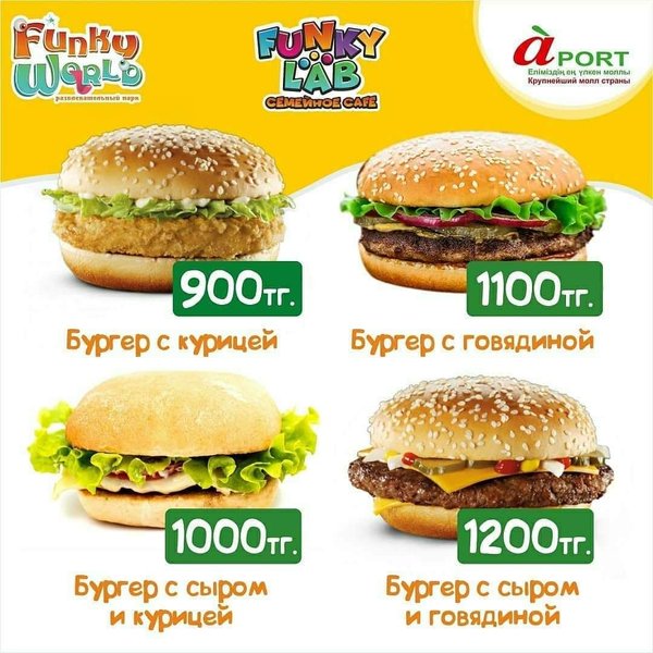А ты знал, что самые вкусные бургеры есть только в нашем кафе Funky Lab? Если ты их еще не пробовал, то ты обязательно должен приехать к нам и насладиться наивкуснейшими бюргерами в своей жизни Мы будем ждать именно тебя! —————————————————— Ең дәмді бургерлер тек біздің Funky Lab кафесінде екенін білесіз бе? Егер сіз оларды әлі жеп көрмеген болсаңыз, онда сіз міндетті түрде бізге келіп, өміріңіздегі ең дәмді бургерлерден ләззат алуыңыз керек Біз сізді күтетін боламыз!
