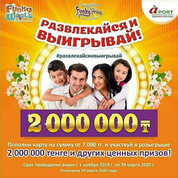 Розыгрыш 2 000 000 тг от парка Funky Town и Funky World