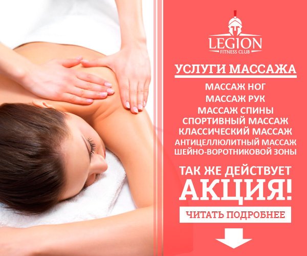 Учитывая такой эффект, наш спортивный клуб «Легион» включают услуги массажа в общий перечень услуг наряду с тренировками, сауной и другими.