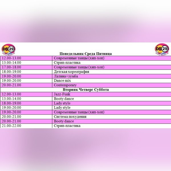 — стриппластика+джазфанк 14:00 -bootydance (twerk) Вт. Чт. 21:00