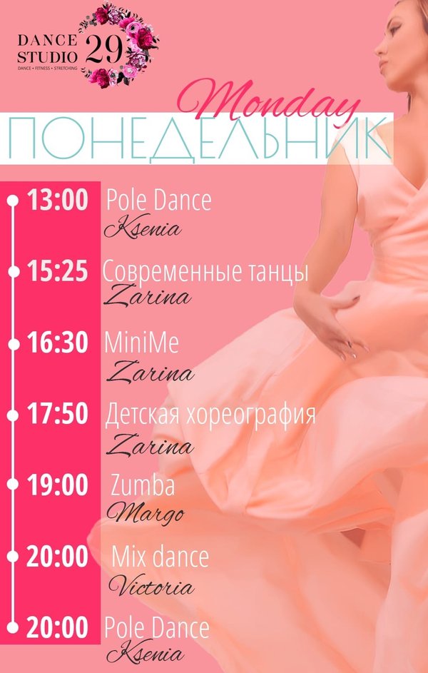 Добро пожаловать в понедельник! Наше расписание : 11:00 джаз фанк 13:00 стрип-пластика