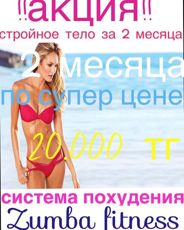 ️ ️ ️АКЦИЯ ️ ️ ️ дорогие девушки, до лета осталось всего пару месяцев! Вы можете подготовить свою фигуру к купальному сезону по уникальной цене! При покупке абонемента за 2 месяца, вы экономите 6000 тг (20.000 вместо 26.000) АКЦИЯ действует только на программы Zumba и система похудения срок действия акции до5 апреля включительно количество абонементов ограничено!