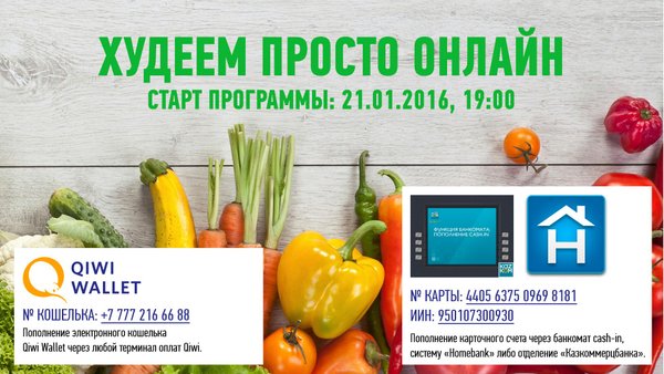 сто», вы можете купить место на тренинге со скидкой 38%! Всего за 50 000 тенге вместо 80 000 тенге! Это — то малое, что мы можем для вас сделать! Мы очень, очень хотим видеть каждую из вас стройной, летящей, легкой, светящейся счастьем. Преимущества и формат тренинга «Худеем Просто»: • Тренер работает с участниками закрытых онлайн групп «Худеем Просто» 1 раз в 10 дней, что значительно повышает результативность тренинга. • Вы можете проходить тренинг живя в другом городе, стране, у себя дома, занимаясь своими делами. • Вы получаете доступ к программе снижения веса, трансам, материалам тренинга. • Вы будете добавлены в закрытый онлайн чат, где сможете общаться, как с участниками, так и с тренером. • За одну онлайн программу «Худеем Просто» (2 месяца) вы можете сбросить 10—20% веса от стартовой массы тела. Приходите 12 декабря 2016 в 19:00 на бесплатную презентацию «Худеем Просто» и подарите себе стройность в 2017 году. Место проведения: Первый НЛП Центр, проспект Сейфуллина, 531, офис 203. Попросите своих близких подарить вам стройность в Новом Году! Приходите сами и приводите с собой друзей! КОНТАКТЫ ДЛЯ РЕГИСТРАЦИИ: Тел.: Моб.: WP.: Email: nlpcenter@nlpcenter.kz Сайт:
