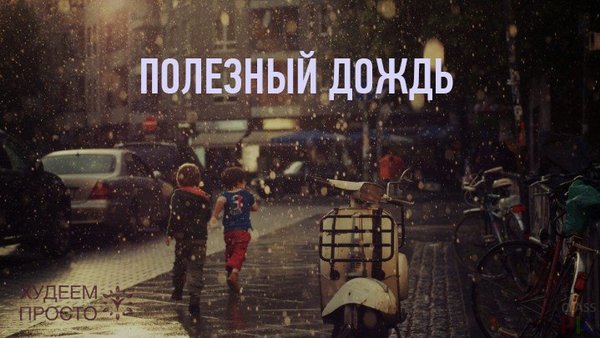 ; запах эфирных масел, которые во время сухой погоды выделяются растениями, а после дождя концентрируются в воздухе; запах веществ, которые образуются в почве благодаря бактериям актиномицетам. 4. Дождь очищает воздух. Вода абсорбирует вредные частицы, и поэтому дышится легко и приятно. Особенно это заметно в городах. 5. Прогулка во время чистого теплого летнего дождя отличная возможность насытить кожу влагой, потому что благодаря теплому влажному воздуху открываются поры, кожа хорошо дышит и отлично впитывает воду из окружающей среды.