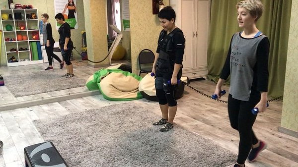ти перед тренировкой. Надевайте костюм и начинайте себя чувствовать супергероем. Мы подключаем костюм к тренажеру и начинаем! Вы тренируетесь. EMS-тренажер настраивается на уровень, оптимальный именно для Вас. Мы начинаем с малой нагрузки и все время интересуемся вашим самочувствием. Подобрав оптимальный уровень – мы приступаем к тренировке. Импульсы ощущаются, как гидромассаж. Тренер показывает Вам каждое упражнение и следит за каждым Вашим движением. Оцениваете результат. Вы успешно справились! Выпейте воды, чтобы подзарядиться энергией. Освежитесь в душе и наслаждайтесь собой в обновленном теле)) И конечно,не забываем записаться на следующую тренировку)))