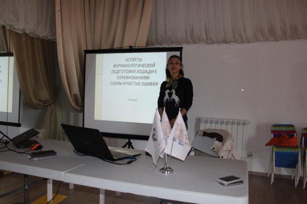 опулярные ветеринарные препараты и подкормки для лошадей, а также их положительные и негативные эффектах. Она объяснила участникам семинара, как не усугубить имеющиеся травмы и заболевания и как включить препараты в период реабилитации. Чего не стоит делать самостоятельно, и с чем конник может справиться и без ветеринарного врача. Акхожина Камилла – ветеринарный врач, член ОО «Ассоциации Ветеринарной медицины Казахстана», специалист по визуальной диагностике, единственный в нашей стране кардиолог для лошадей. Она дала ветеринарам, пришедшим на семинар, полезную информацию о необходимых действиях в экстренных случаях, а также – основы флюидотерапии. Семинар, безусловно, был интересен и для коневладельцев, имеющих лошадей, не занятых в спорте, поскольку лектором были рассмотрены актуальные схемы реабилитации лошадей при некоторых заболеваниях. Ветеринарные семинары для врачей, работающих в конной индустрии, уже давно проводятся в Казахстане, однако мы на своей практике убедились в необходимости организации и проведения иппологических семинаров для широкого круга слушателей: — всадников, — тренеров, — владельцев лошадей, — владельцев конных комплексов и конных заводов. Семинары охватывают все направления конного мира — от спорта до любителей мягких методик. На наших семинарах каждый конник найдет тематику, соответствующую его специализации!