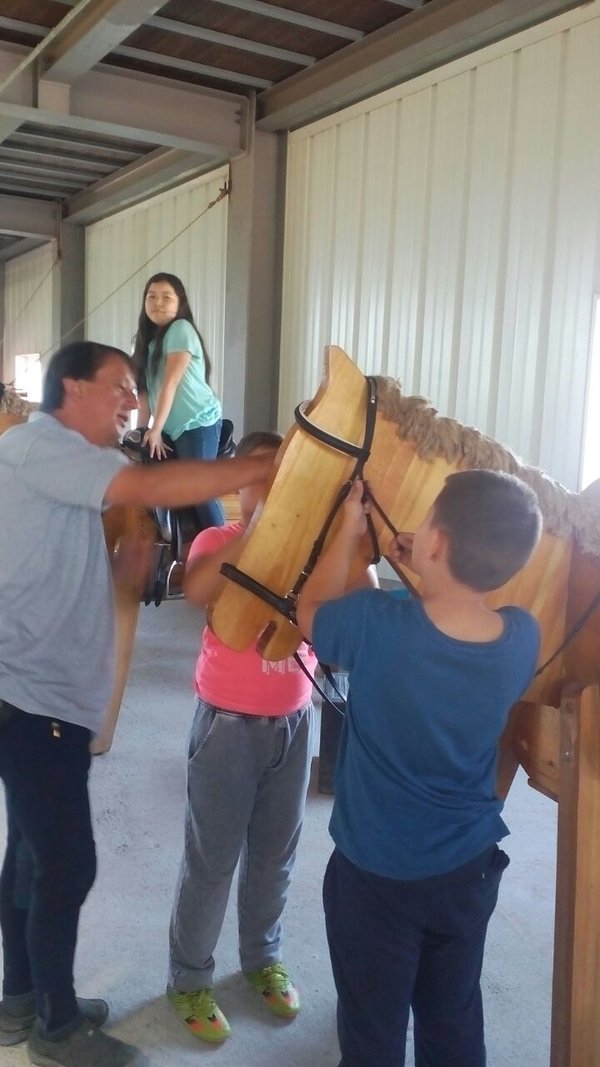 Сегодня дети в нашем лагере разбирали и собирали различные виды безжелезных оголовий. Каждая команда, в составе которой было три ребенка должна была как можно быстрее собрать свое оголовье. Застежки трудно даются поколению, выросшему с застежками на липучках.