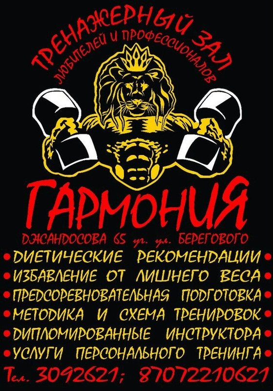 Средняя оценка заведения от пользователей Zoon.kz: 4.7. Вы можете составить свой отзыв о тренажерном зале Гармония!