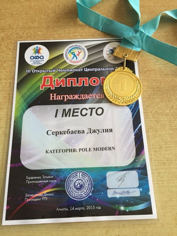Поздравляем Серкебаеву Джулию, с занятым первым местом на III Открытом чемпионате Азии по Pole-dance. Инструктор Манакова Карина.