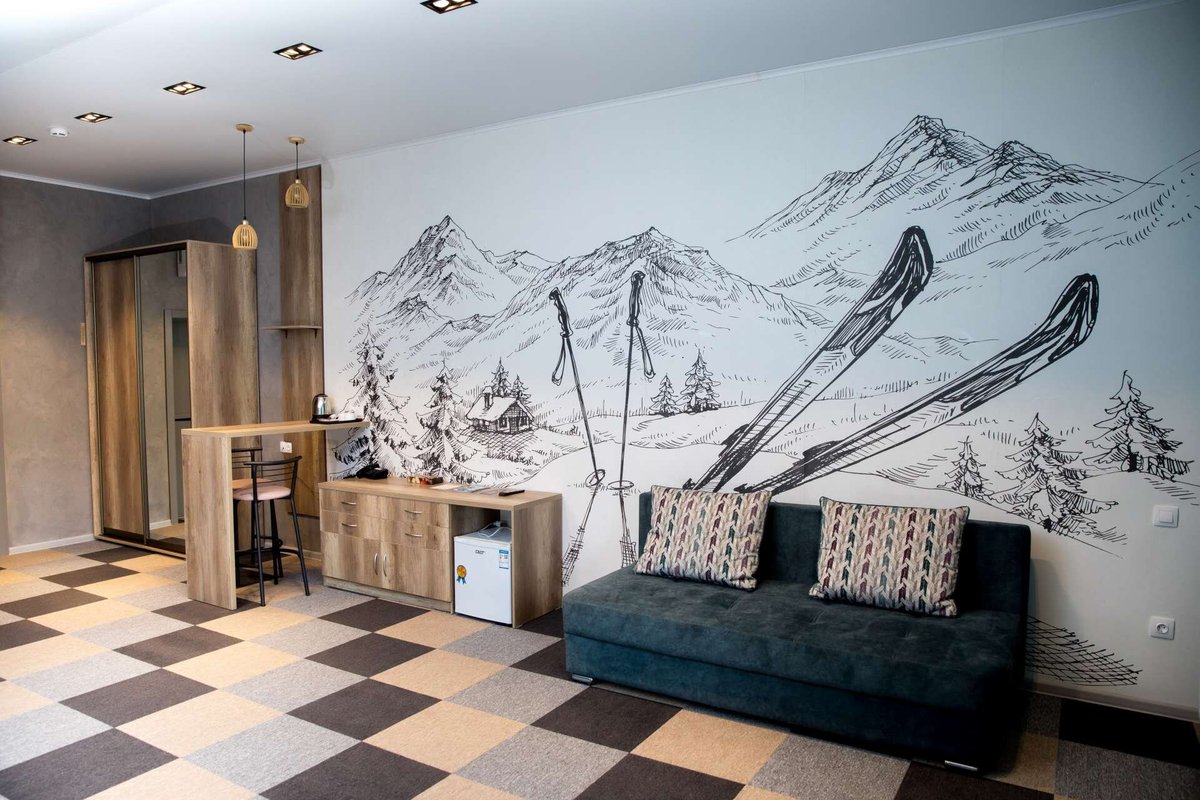 Это комфортабельная гостиница с большим бассейном 25 на 8 метров, с лучшим СПА в горах, и банкетным залом до 100 человек.