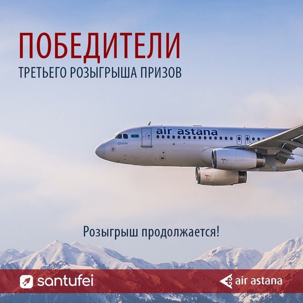 Наш розыгрыш с Air Astana подходит к концу и сегодня мы подводим итоги последнего промежуточного этапа! Итак, подарки от национального авиаперевозчика отправляются к: 1. Сергей Бреус (Алматы) 2. Дмитрий Козлов (Алматы) 3. Асель Турысбекова (Алматы) 4. Мухтар Тайжан (Астана) Напоминаем, у вас еще есть шанс принять участие в розыгрыше главных призов, среди которых сертификаты на перелеты в Лондон, по Казахстану, а также апгрейды до Бизнес-класса на рейсы в Москву. Для этого вам нужно приобрести авиабилеты Air Astana на Santufei до 11 июня. Резуль… — Читать дальше