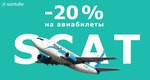 Скидка 50% на билеты авиакомпании SCAT! Акция продлится до 15 декабря 2015 г. Скидка действует для билетов, перелет по которым выпадает на период с 15.01.2016 г. по 26.03.2016 г. Скидка не распространяется на детские, молодежные и пенсионные тарифы. Авиабилеты по акции — невозвратные. Перебронирование не разрешается.