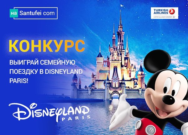 Santufei совместно с Turkish Airlines объявляет конкурс! Мы решили разыграть семейную поездку в Disneyland Paris! Все, что Вам нужно – снять креативный, яркий, веселый ролик о Вашем большом желании посетить Disneyland. Обязательное условие – участие ребенка в возрасте от 3 до 11 лет. Выкладывайте Ваше видео в Instagram, Facebook или VK со специальным хештегом #вДиснейсСантуфей до 01.09.2017 и следите за новостями на наших страницах. Ознакомиться с правилами конкурса можно по ссылке
