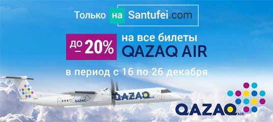 Только на Santufei с 16—26 декабря билеты QAZAQ AIR со скидкой 20%! Летайте выгодно с нами! Все направления можно посмотреть по ссылке ↓
