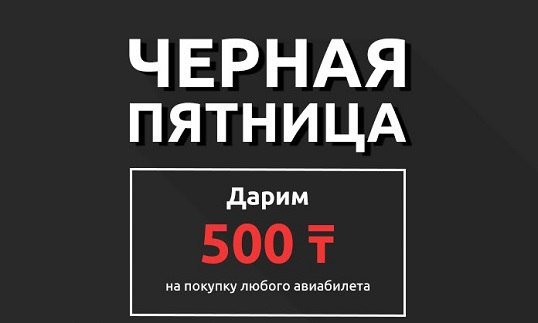 Сегодня у нас минус 500 тенге на любой авиабилет по промо-коду friday. Самое время прикупить пару билетов, чтобы улететь подальше от суеты в новогодние праздники.