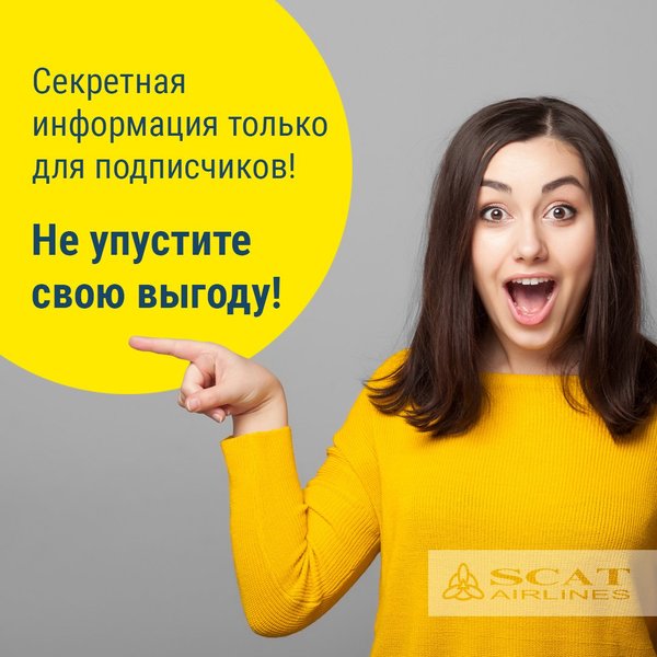 Дорогие друзья! На нашей странице в Instagram уже тринадцать тысяч подписчиков. Мы высоко ценим ваши отзывы о нашей компании, всегда принимаем во внимание ваши пожелания, стремимся дать исчерпывающую информацию по каждому вашему запросу. На нашей странице мы всегда стараемся объективно освещать деятельность авиакомпании. Во многом, своим быстрым развитием нашей официальной страницы, мы обязаны именно вашему доверию и поддержке! Наша цель — дальнейшее увеличение достигнутых показателей работы в социальных сетях Авиакомпания SCAT 20 лет вместе!
