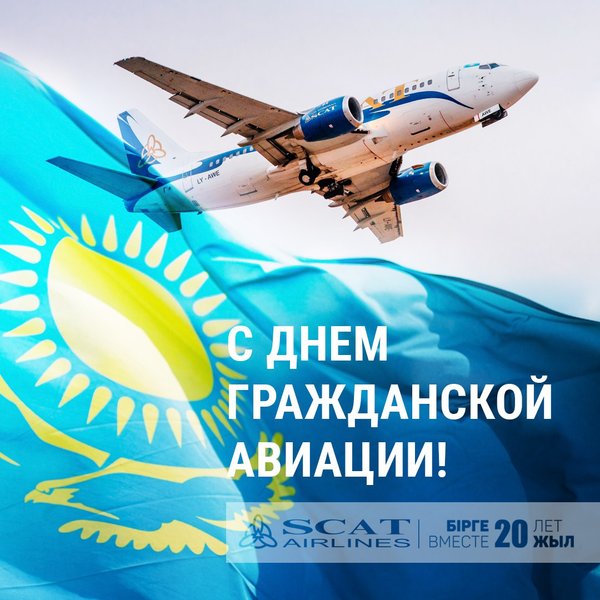 ашық аспан, жаңа биіктерге қол жеткізуді және әрдайым қолайлы ауа райы тілейміз! Азаматтық Авиация күні құтты болсын! SCAT әуекомпаниясы 20 жыл бірге! Сегодня праздник для всех, кто посвятил свою жизнь небу- День Гражданской Авиации! Каждый работник этой отрасли настоящий профессионал, иначе и быть не может. Спасибо Вам за то, что научили нас летать, за то, что в небе нам комфортно и спокойно. Ваша работа это не только романтика перелетов и путешествий, но и огромная ответственность, годы обучения и повышения квалификации, упорство, профессионализм и сила духа. Авиакомпания SCAT от всей души поздравляет всех, кто любит небо и живет им. Мы желаем вам чистого неба, достижения новых высот и всегда летной погоды! С Днем Гражданской Авиации! Авиакомпания SCAT 20 лет вместе!