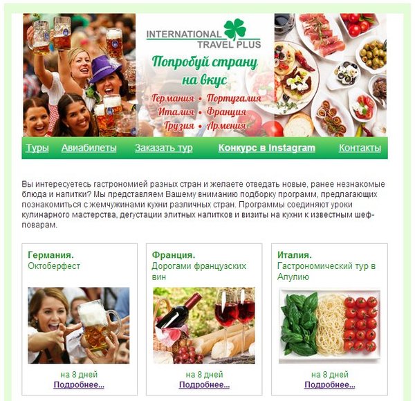 Новая порция свежих предложений по гастрономическим и винным турам в нашей рассылке! Ознакомиться с полным содержанием рассылки можно по ссылке Подписаться на рассылку нужно здесь