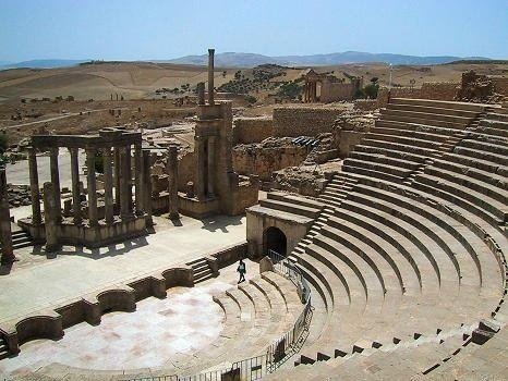 прославленный картин и икон. Римский театр на три с половиной тысячи зрителей, диаметром в 65 метров предлагает оценить свою истинную красоту. Римский Капитолий построен в 166 году, при раскопках на его месте были обнаружены фрагменты статуи Юпитера, которые сейчас предоставлены в музее Бардо. Здесь также Вы сможете посетить триумфальную арку Септимия.
