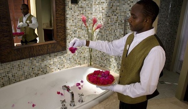 тся о перевозке любимых духов. 2. Барбекю-дворецкий Отель Ritz-Carlton Lodge в Джорджии, США Отель Ritz-Carlton Lodge превознес уроки кулинарии на новый уровень: барбекю-дворецкий научит вас основ пользования грилем. Он поможет подобрать идеальное дерево для угля и усовершенствует ваши соусы. Вы узнаете практически все о гриле и копчении, а также научитесь готовить ребрышки, курицу гриль и многое другое. 3. Купальный дворецкий Отель Gansevoort в Нью-Йорке, США После долгого путешествия вы хотите успокоить свое усталое тело в расслабляющей ванне? Ее для вас приготовит купальный дворецкий. Он поможет вам выбрать наиболее подходящую ванну из трех возможных вариантов (детокс, восстанавливающую или лечебную), а затем вы отдохнете и расслабитесь в ароматной воде. 4. Мыльный дворецкий Отель Riviera Maya в Мексике Некоторые отели балуют своих гостей роскошными банными принадлежностями, но отель Riviera Maya превзошел их: в отеле появился собственный мыльный дворецкий. Он навестит вас после поселения и представит ассортимент мыла ручной работы. В ассортименте есть мыло с ароматом лимона, шоколада, персика и корицы. 5. Каминный дворецкий Отель Taj Boston в Бостоне, США В бизнес-люксе отеля Taj Boston в зимние дни вам предоставят чудесный камин, создающий уют. Но вам не придется копошится в углях и чиркать спичками: камин будет обслуживать специально обученный дворецкий. Он подберет для него лучшее дерево и даже разведет огонь.