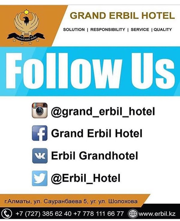 Дорогие друзья! Не пропускайте новости от Grand Erbil Hotel! Для вашего удобства мы есть в самых прогрессивных и модных соц сетях. Выбери что подходит именно для Вас!