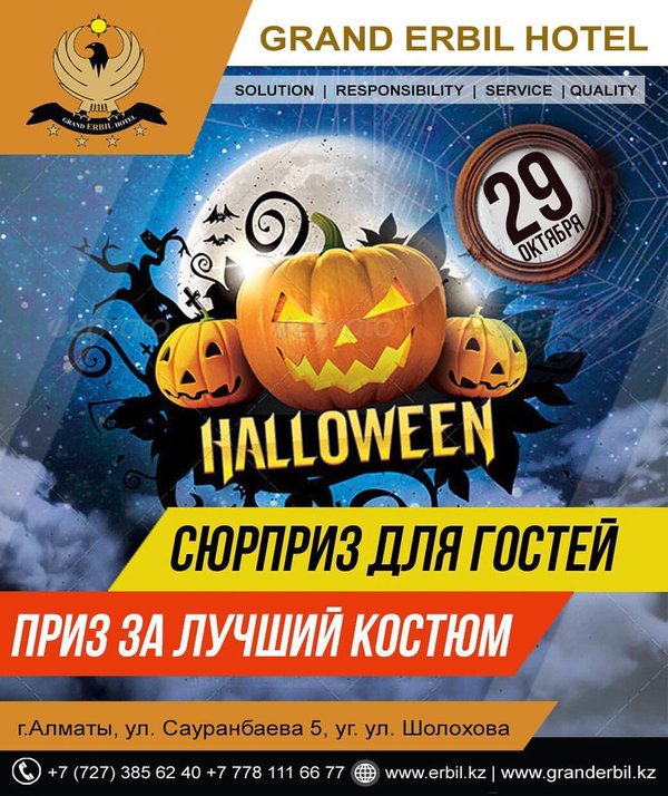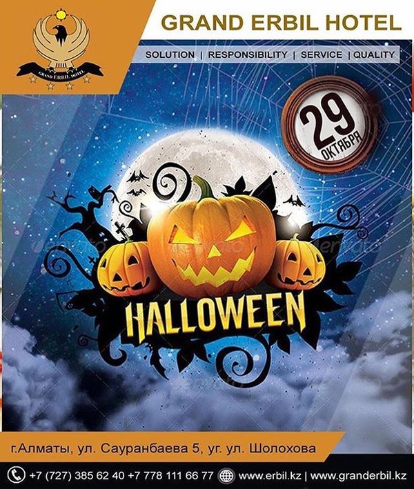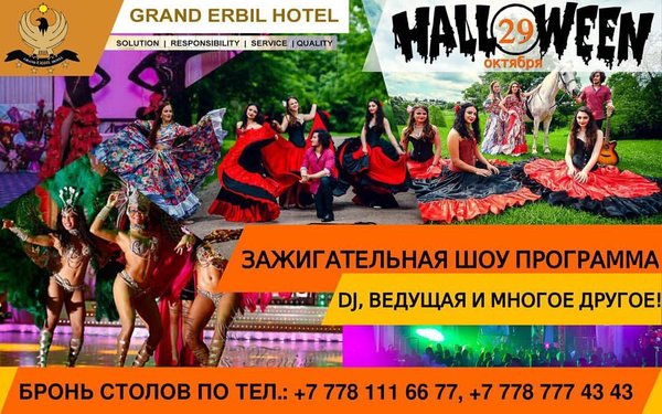 Гостинично-ресторанный комплекс Grand Erbil Hotel приглашает своих друзей отпраздновать самую страшную ночь в году Halloween в ресторане «Грузия Фильм» в самой дружелюбной и уютной обстановке! Мы ждем Ваши звонки:, /