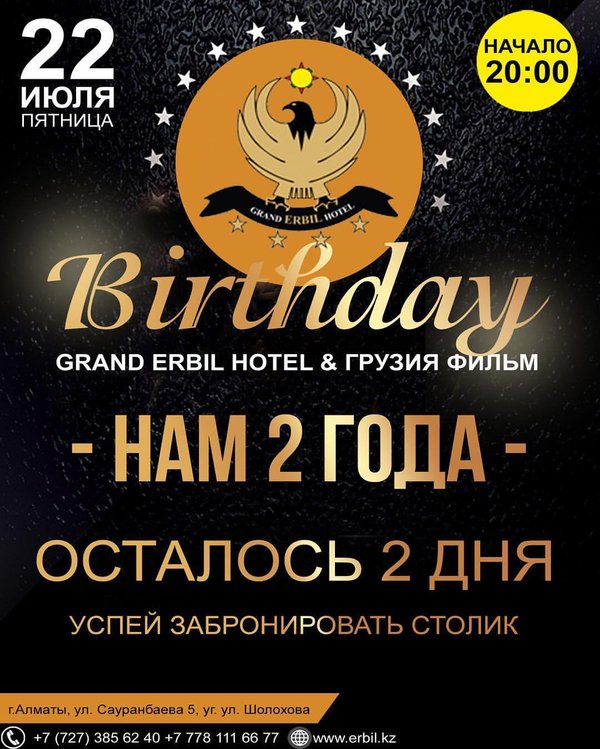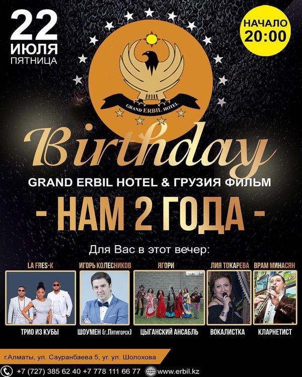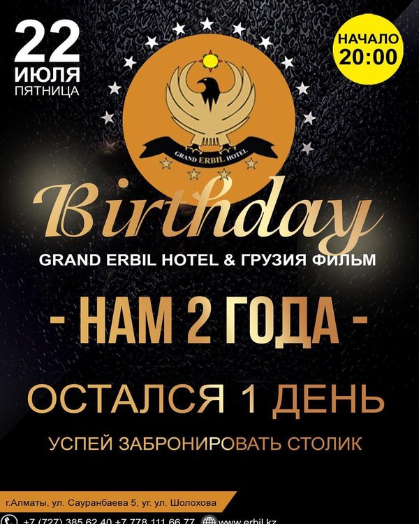 а летней террасе ресторана Грузия Фильм ‼️22 июля, начало в 20:00‼️ Наш адрес Сауранбаева 5., уг улицы Шолохова. Grand Erbil Hotel Бронь столиков по номеру :