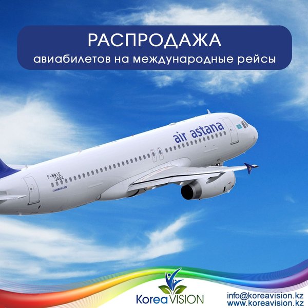СКИДКИ НА АВИАБИЛЕТЫ‼ Посетите Сеул по специальной цене от 180 тыс тг со скидкой: Алматы-Сеул-Алматы, Астана-Сеул-Астана в обе стороны Акция действует до 31 января‼ СПЕШИТЕ о всем вопросам _ Подписывайтесь на наш канал в Telegram ⏩ Алматы: 3903313;. info@koreavision.kz ул.Сатпаева 24 офис А Астана: 784 997;. astana@koreavision.kz Пр.Сарыарка 12 БЦ Capital, 3 этаж 301в офис Атырау:;. kvatyrau@koreavision.kz Смагулова 52а Сеул:;