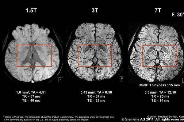 Чем отличается МРТ 1.5 тесла от 3 тесла? Магнитно-резонансная томография признана одним из самых лучших и информативных методик исследования в медицинской практике Преимущества трехтесловых аппаратов: Повышение качества визуализации органов и тканей. Можно получить высококачественные срезы при их минимальной толщине (в отдельных случаях — даже до 0,5 миллиметра). Так можно определить наличие у пациента мельчайших патологических изменений. Значительно сокращается время пребывания пациента в магнитном поле. Повышается точность визуализаци… — Читать дальше
