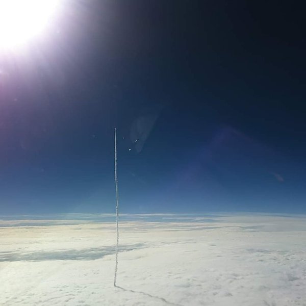 Пассажир в самолёте сфотографировал ракету, покидающую землю