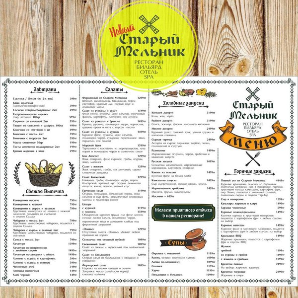 Только в ресторанах «Старый Мельник» при заказе любого банкетного мероприятия или дружеского застолья — скидка на крепкие алкогольные напитки 33%. Приезжайте, наслаждайтесь отдыхом и природой.