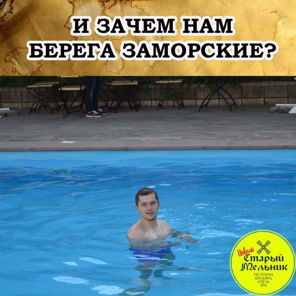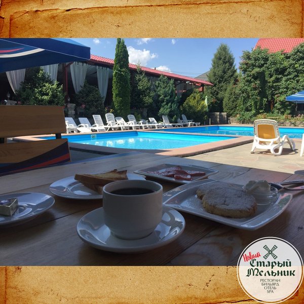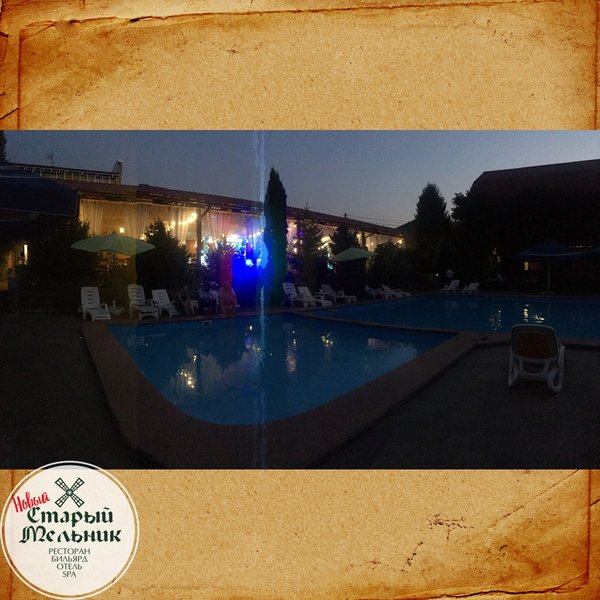 ДОБРАЯ КОМПАНИЯ В ДОБРОМ МЕСТЕ! Летняя площадка ресторанно-гостиничного комплекса «Старый Мельник». У нас самый лучший в городе шашлык. Кристально голубой бассейн. Летний бар. И пивной безлимит. Кухня на любой вкус. Караоке + бильярд. Дискотека у бассейна. Банный комплекс. Уютные номера с видом на горы. Лучшее предложение для Вашего отдыха!