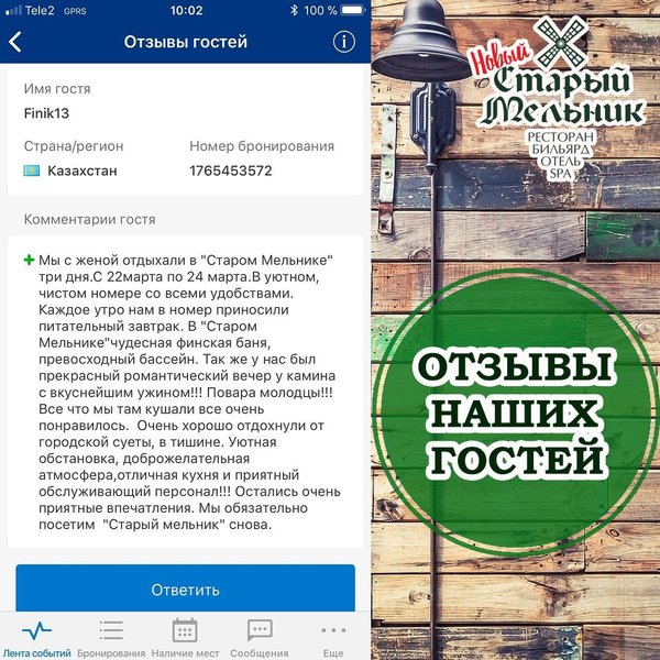 Вот такие приятные отзывы оставляют наши Гости: Мы с женой отдыхали в Старом Мельнике 3 дня. С 22 марта по 24 марта. В уютном чистом номере со всеми удобствами. Каждое утро нам в номер приносили питательный завтрак. В Старом Мельнике чудесная финская баня, превосходный бассейн. Также у нас был прекрасный романтический вечер у камина с вкуснейшим ужином!!! Повара молодцы!!! Все, что мы там кушали, все очень понравилось. Очень хорошо отдохнули от городской суеты, в тишине. Уютная обстановка, доброжелательная атмосфера, отличная кухня и приятный о… — Читать дальше