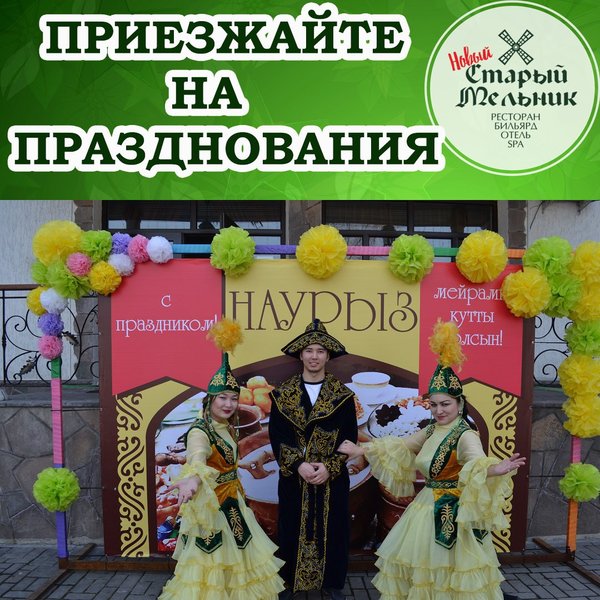 Приглашаем всех наших друзей и гостей отпраздновать праздник Наурыз 2018 в ресторанно- гостиничном комплексе Старый Мельник. В программе праздника: — открытие летней площадки; — сочный шашлык на горном воздухе; — пивной безлимит (2 299 тенге на персону). Каждому Гостю в ПОДАРОК традиционное блюдо НАУРЫЗ-КОЖЕ по старинному семейному рецепту и воздушные БАУРСАКИ; Отдыхайте у нас! Отдыхайте вместе с нами!