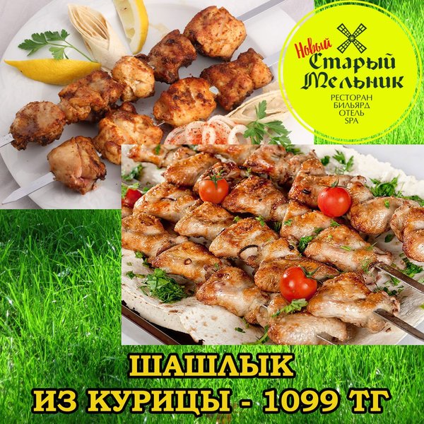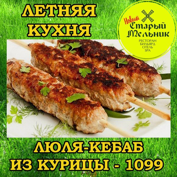 Вот такой сочный и ароматный шашлык ждет вас на летней площадке «Старого Мельника». С полным меню на летней площадке вы можете полистав фотографии. Всегда ждем вас!