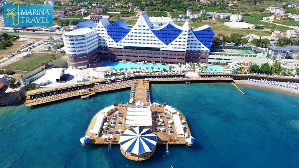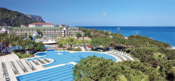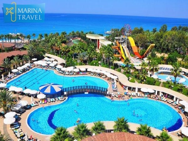 еловека) * 7 баров * 2 теннисных корта (кварцевое покрытие) * футбольное поле (80х48 кв.м) УСЛУГИ: РАЗВЛЕЧЕНИЯ И СПОРТ: * анимация на русском языке * турецкая ночь (в 2 недели 1 раз), живая музыка (1 раз в неделю) * турецкая баня, сауна, парная * фитнес-центр * амфитеатр * дискотека * настольный теннис * 2 теннисных корта * дартс * стрельба из ружья * волейбол, баскетбол * пляжный волейбол * мини-гольф * аэробика, бадминтон * моторные виды водного спорта (платно) * бильярд (платно) КРАСОТА И ЗДОРОВЬЕ: * SPA центр (платно) * массаж, пилинг (платно) * оздоровительный центр (платно) * салон красоты, парикмахерская (платно) ПРОЧИЕ УСЛУГИ: * обмен валюты * Wi-Fi (бесплатно, в лобби) * услуги прачечной, химчистка * интернет-кафе, игровой салон * мини-магазины, фотограф * медицинские услуги (24 часа в сутки) * аренда автомобиля и яхт ДЛЯ ДЕТЕЙ: * кроватка, по запросу * мини-клуб 4—7 лет * джуниор-клуб 8—12 лет * тинейджер-клуб 13—17 лет * открытый детский бассейн * аквапарк с бассейном 1 горка * детская секция в крытом бассейне * в ресторане предоставляются детские стулья * игровая площадка 440 кв.м * няня (платно, по резервации) ПЛЯЖ: * собственный песчано-галечный пляж находится в 150 м от отеля, через дорогу, по подземному переходу * протяженность пляжа — 170 м. * шезлонги, зонтики, матрацы, пляжные полотенца — бесплатно * заход в море — песок, галька * душ, кабины для переодевания, спасатели, бар на пляже * стоимость тура на одного человека при двухместном размещении Моб.: ,