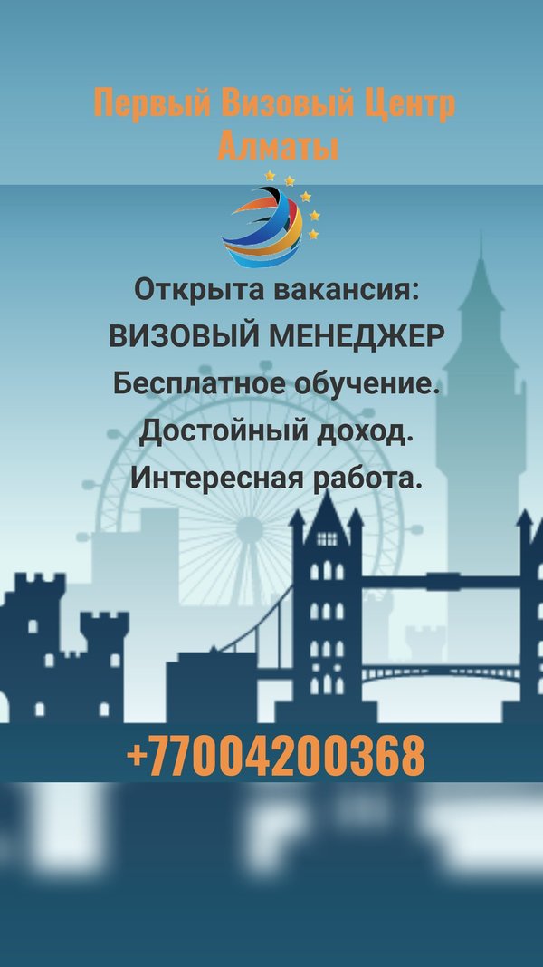 Вакансия еще актуальна. Первый Визовый Центр объявляет набор менеджеров по работе с клиентами! Более 7 лет активного развития на рынке! Более 230 городов присутствия по России, Казахстану и СНГ! Более 45 стран в оформлении виз! Компания предоставляет комплексное обучение с экспертами данной отрасли. Нам нужен активный сотрудник с навыками продаж на должность ВИЗОВЫЙ МЕНЕДЖЕР, который стремится освоить перспективную сферу и получать достойный доход. По интересующим вопросам звоните/пишите по номеру