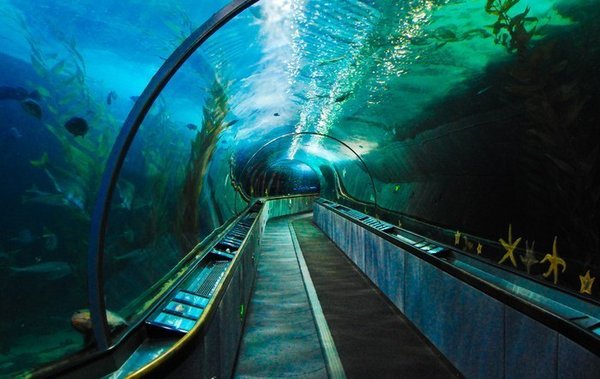 Главной достопримечательностью Aquarium of the Bay является плексигласовый тоннель длиной 91 метр, проложенный по дну бассейна.