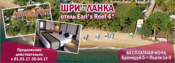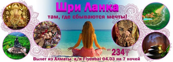 Отдых в Шри Ланке от 234 000 тенге. Вылет из Алматы от 7 ночей. The Serendipity Hotel Beach 2*+(Унаватуна) от 234 тыс.тг Ritas Hotel 3* (Хиккадува) от 238 тыс.тг Thai Lanka 2* (Хиккадува) от 239 тыс.тг Sunset Marawila 3*(Маравила) от 252 тыс.тг Avenra Beach 4* (Хиккадува) от 274 тыс.тг Earl's Reef 4* (Берувела) от 285 тыс.тг