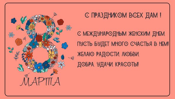 Наша команда поздравляет вас международным женским днем и желает всего наилучшего.