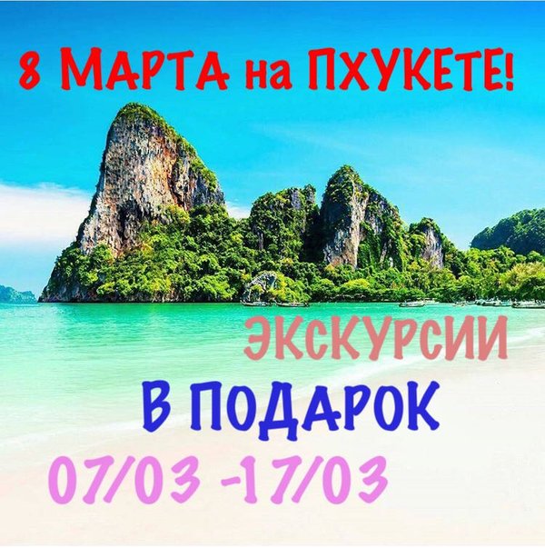 Для любимых туристов на любимые праздники. Только для гостей, путешествующих на о. Пхукет в период: с 07.03 по 17.03 (10 ночей). По случаю праздника Международный Женский День 8 Марта мы ДАРИМ в ПОДАРОК экскурсии на выбор: * ШОУ Дельфинов / ШОУ Крокодилов / ШОУ Змей.