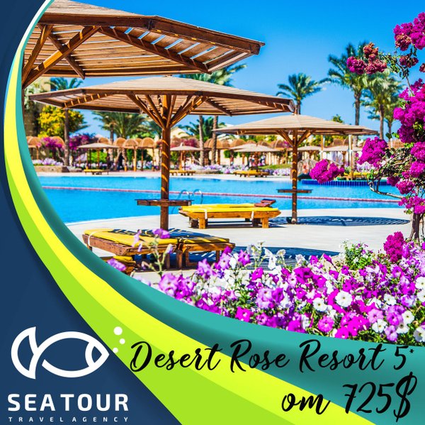 й приятный, уютный отель 5*. Ухоженная большая территория. Также достаточно приятный персонал и прекрасный сервис. Имеется удобная лагуна для детей. Desert Rose Resort с его километровым нетронутым пляжем и безупречной природной лагуной с золотыми песками, площадью 40000 кв.м., является лучшим местом для пляжного отдыха, включающим комплекс развлекательных мероприятий. Кроме того, Вы можете просто наслаждаться потрясающим непревзойденным климатом Красного моря.