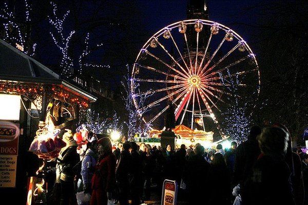 Шотландская рождественская ярмарка в Эдинбурге работает с конца ноября до 5—6 января.
