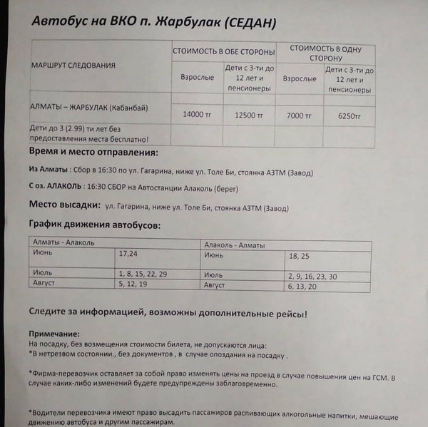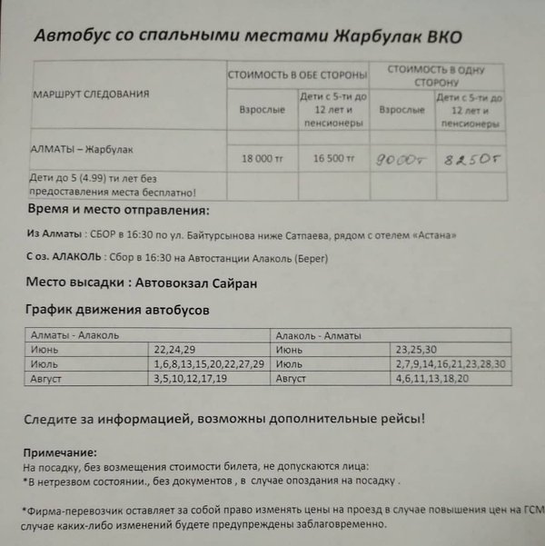 Внимание! АКЦИЯ! Проезд на спальном автобусе от Южного Берега озера Алаколь! Алаколь — Алматы в одну сторону на 19.06, 24.06 и 29.06 по 5500 ТГ с человека! Подробнее : ️ 3760588, 2699874 manager-taukomekmail.ru