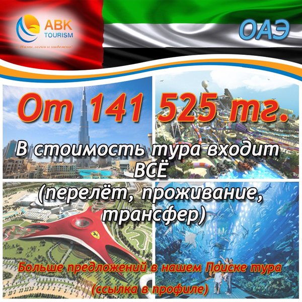Мы рады сообщить о прекрасной возможности отправиться в роскошный ОАЭ по доступным ценам от туроператора ABK Tourism! Больше интересностей в нашем Поиске тура:
