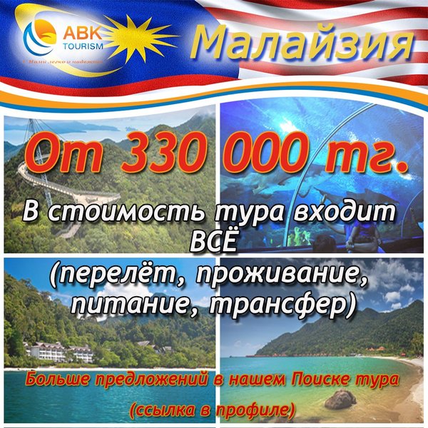 Друзья! Мы рады сообщить о прекрасной возможности отправиться в солнечную Малайзию оп доступным ценам от туроператора ABK Tourism! Больше интересностей в нашем Поиске тура: